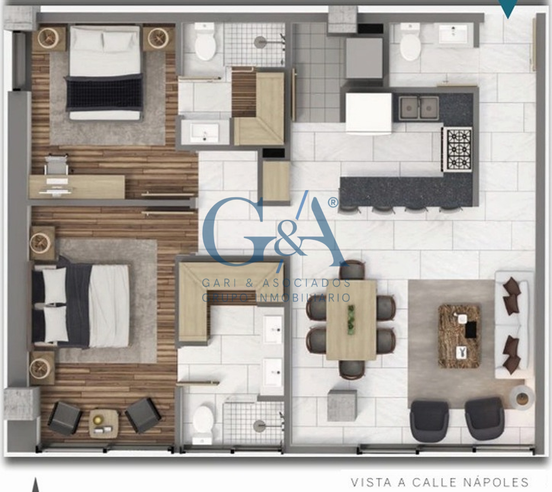 - 2 recámaras, cada una con baño completo y vestidor