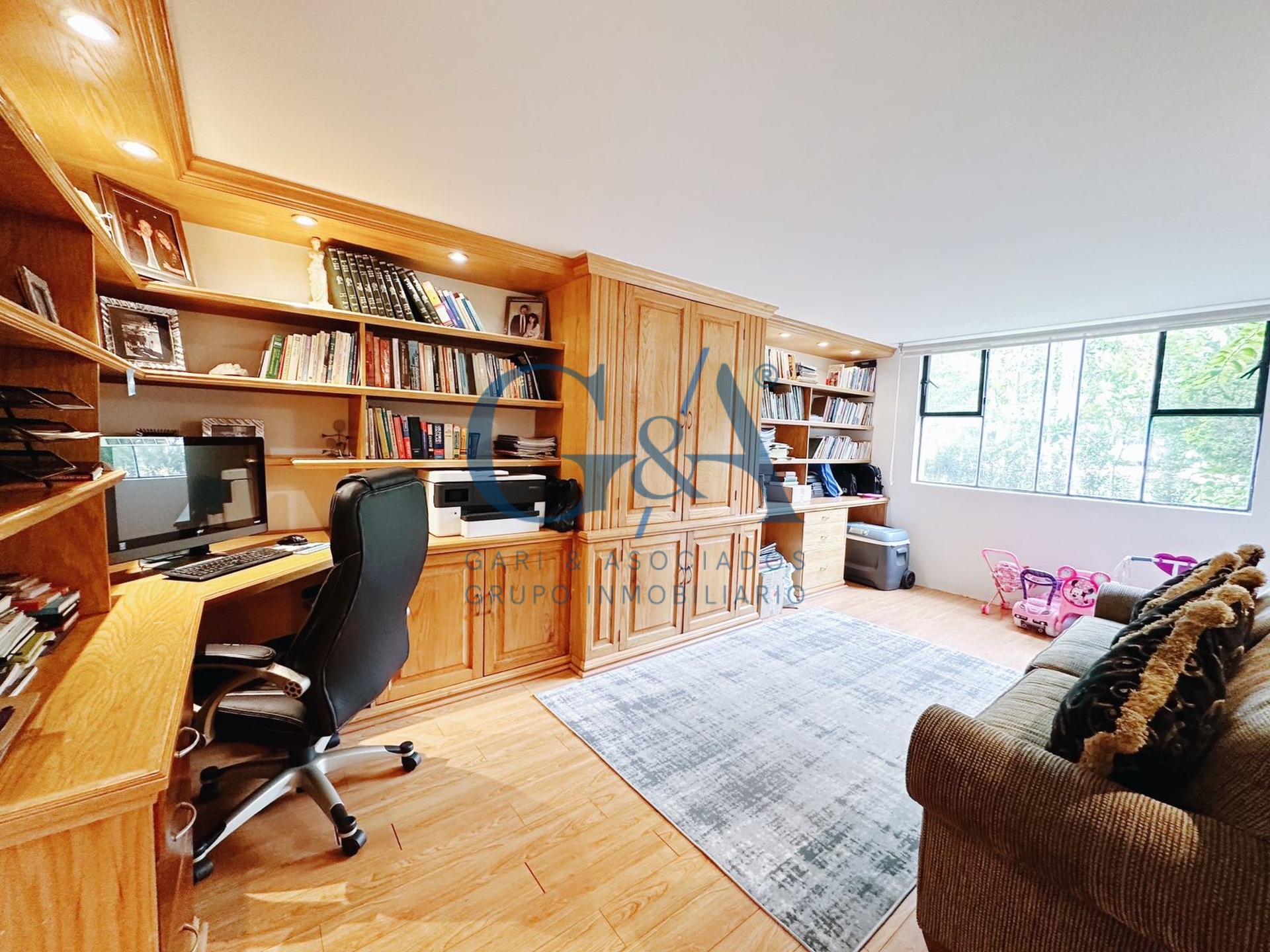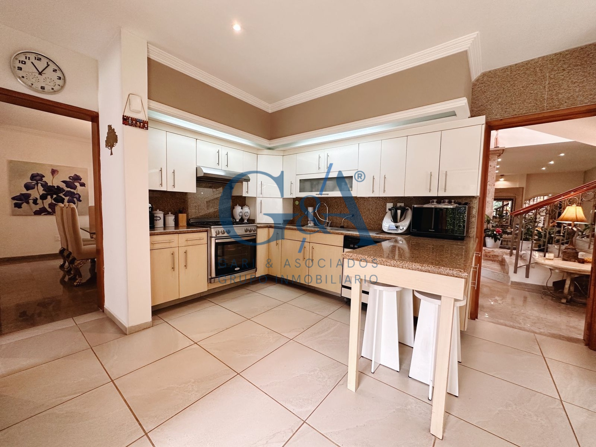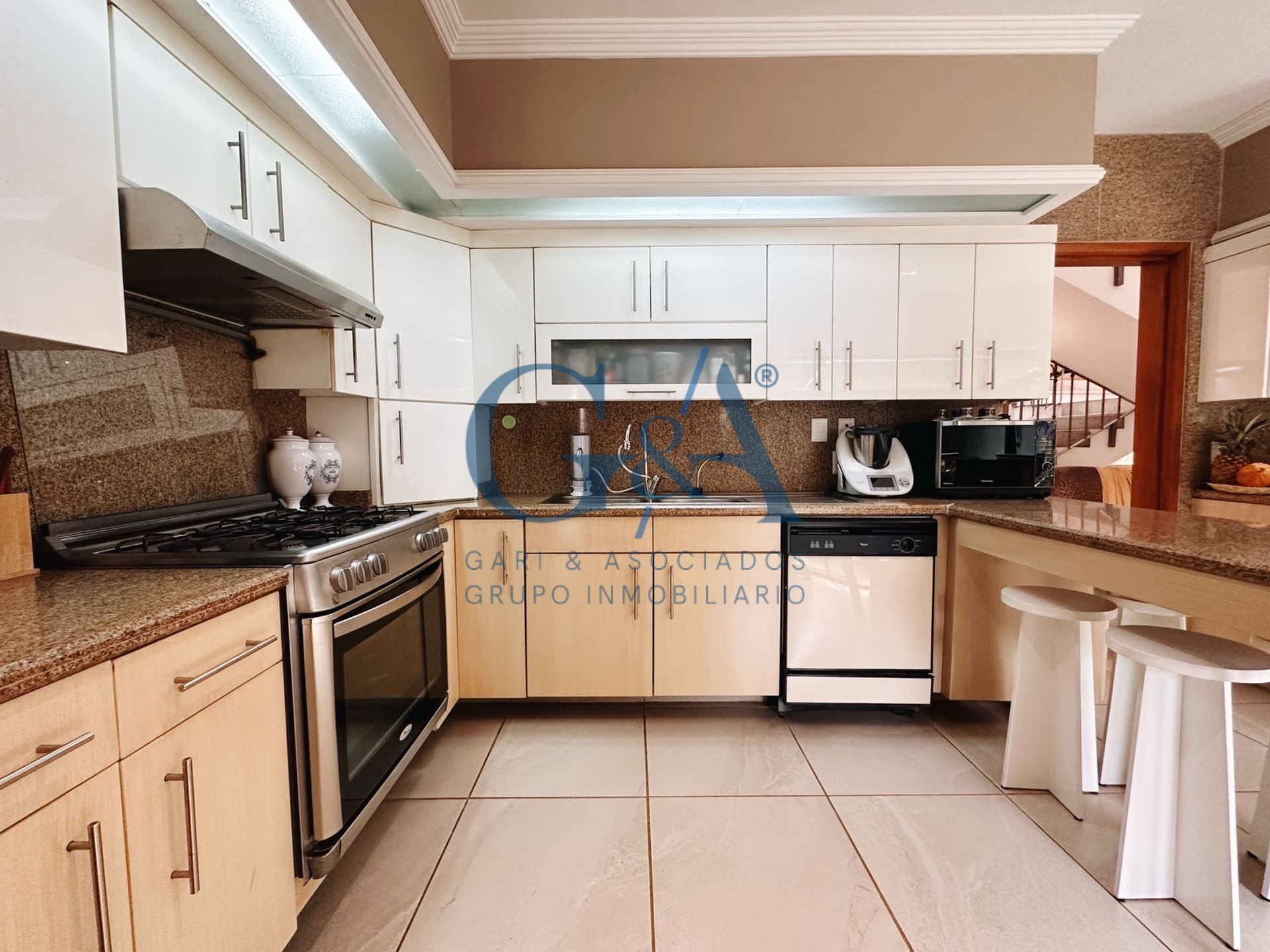Sala, Comedor, Cocina integral con barra, cubierta de granito, lavavajillas, horno microondas y alacena independiente, Ante comedor, Estudio, Medio baño