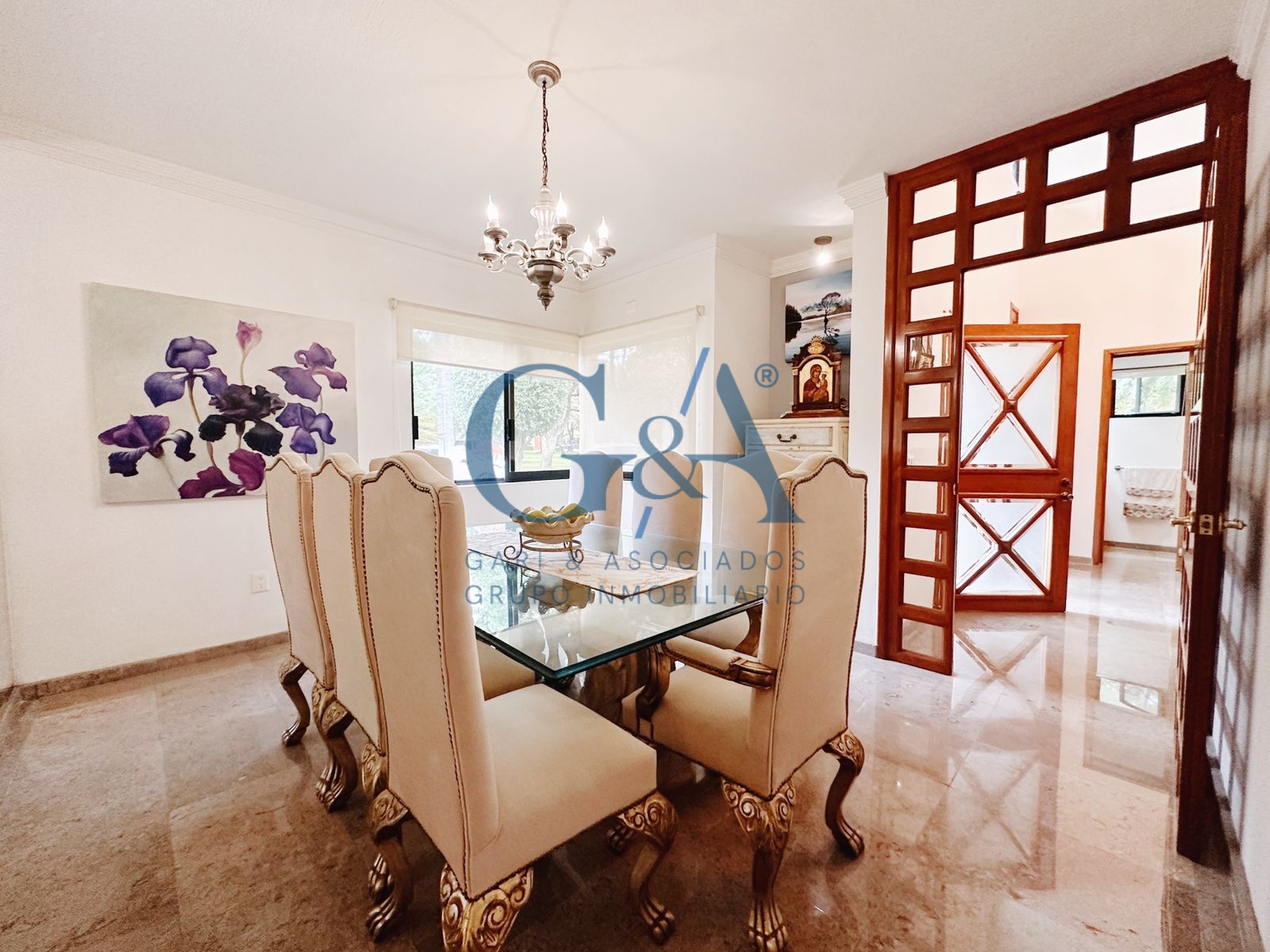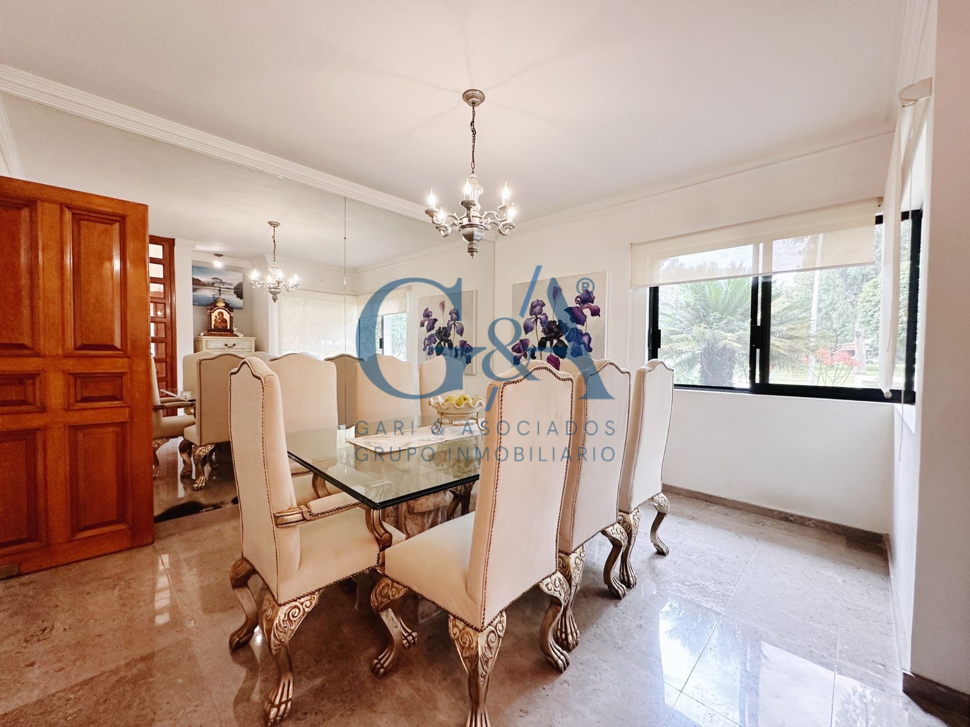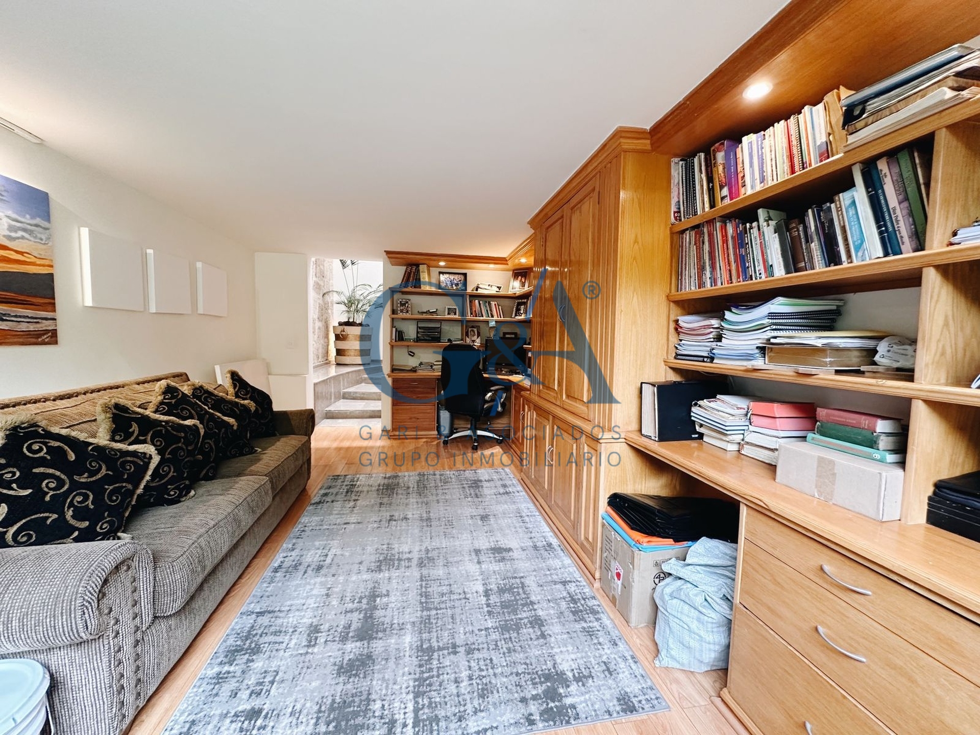 Sala, Comedor, Cocina integral con barra, cubierta de granito, lavavajillas, horno microondas y alacena independiente, Ante comedor, Estudio, Medio baño